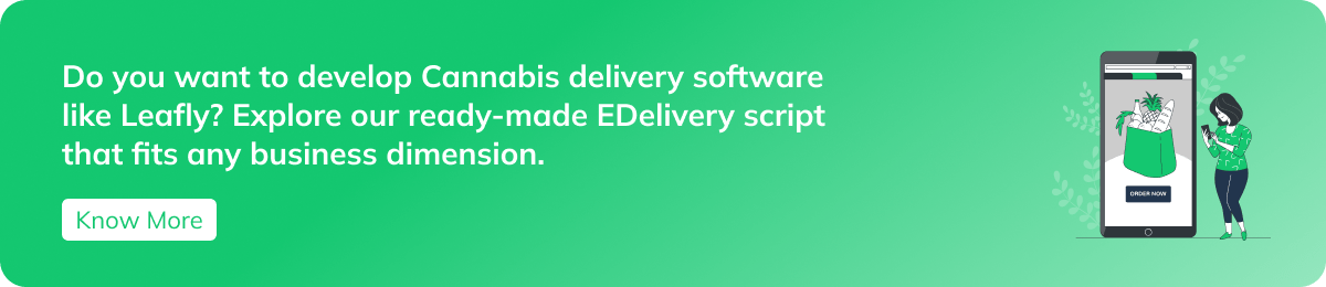 The pricing model for developing a Leafy clone might be based on geolocations and many other factors. Hence before stepping into the development process, you need to analyze the market to know how you can get the app developed at a pocket-friendly price. You can even invest in ready-to-use Leafly like app solutions, e-delivery to boost your weed or cannabis delivery business online.