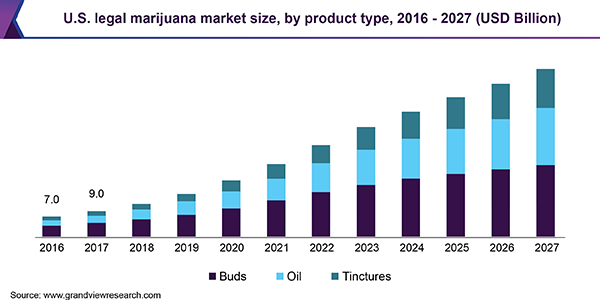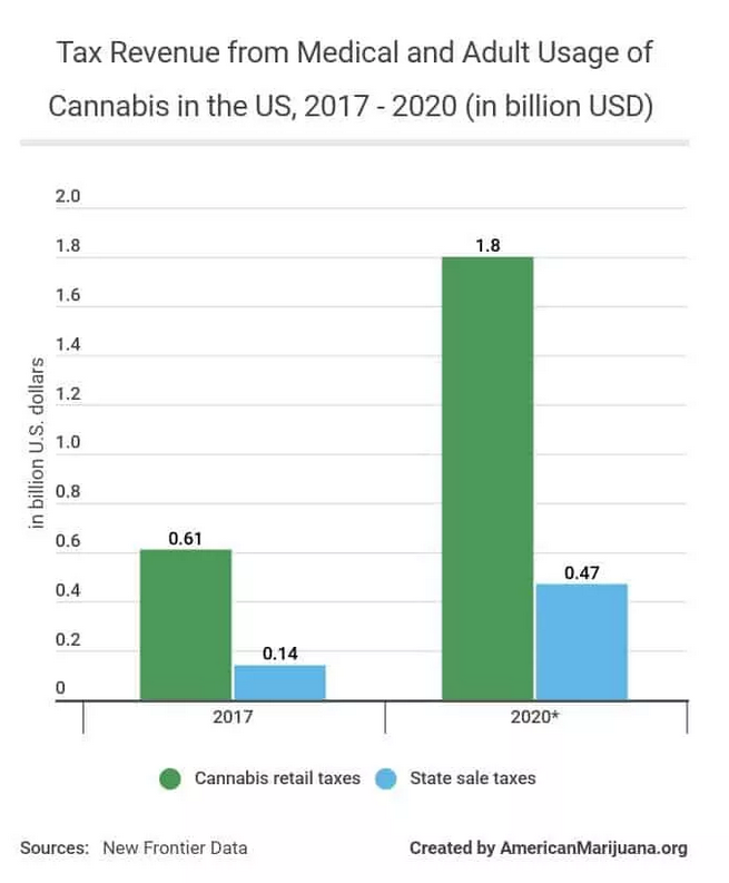 Based on current standards, the tax revenue of marijuana will reach around 1.19 billion USD between 2017 and 2020. 2016 was found as the year of investment for the legal cannabis industry, reaching 477.96 Million USD.Grand View Search shows that the global traditional marijuana market is evaluated at USD 17.7 billion in 2019 and is anticipated to increase at a CAGR of 18.1% over the period.