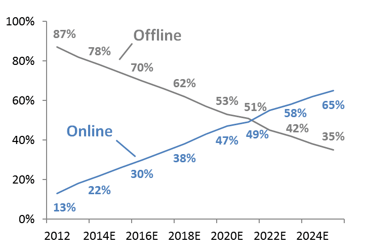 As per the data collected by Cowen and Company, we can clearly see that online orders are expected to surpass offline orders within a couple of years. The rise of digital technology has transformed the food market. Instead of visiting crowded restaurants, consumers now place orders online via restaurant apps and websites.