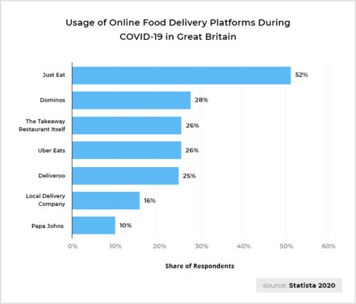 As per Statista’s report, doorstep food delivery options are seeing a major increase in order volumes. Online food delivery apps such as GrubHub, JustEat, Zomato, Postmates are all witnessing a significant increase in demand and order frequency.