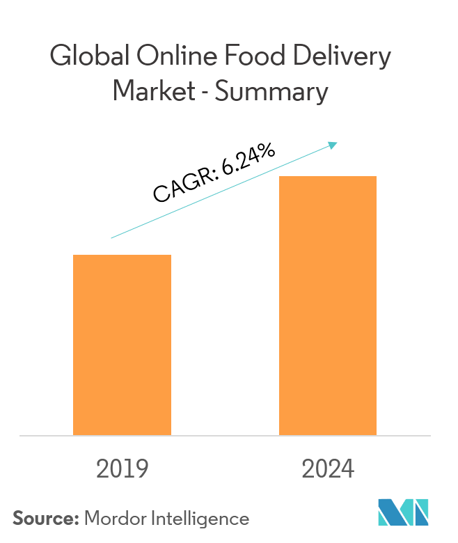 Here you can see that the online food delivery market is projected to register a CAGR of 6.24% by the year 2024. Food delivery apps such as GrubHub, Zomato, DoorDash have changed customer preferences; they now prefer to order food online instead of dine-in. Moreover, attractive deals, heavy discounts, comfort, etc., are the major reasons that encourage users to order food online.